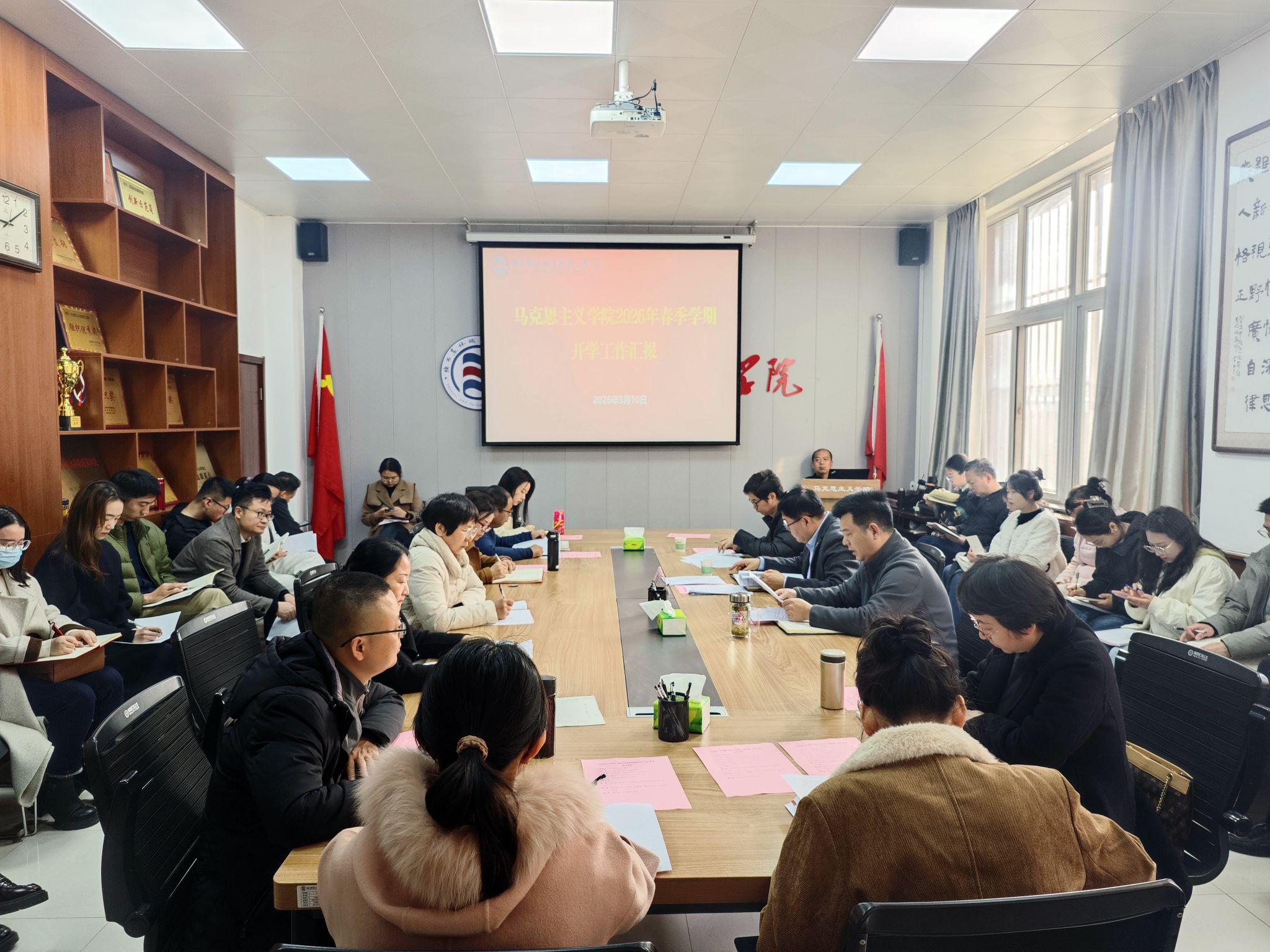 会上,马克思主义学院负责人汇报了2026年重点工作计划及春季学期开学工作整体安排,各教研室主任分别就开学准备、备课磨课等具体工作进行了汇报。