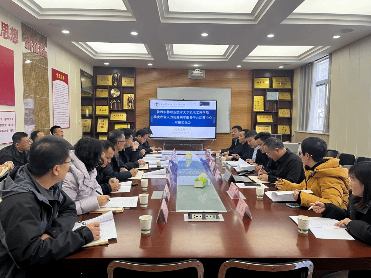 1月13日下午,杨凌农业人力资源共享服务平台运营中心来校与机电工程学院进行合作对接交流。运营中心主任蔡仕彪、赵晓宏,我校机电工程学院负责人、教研室主任和教师代表等参加座谈。